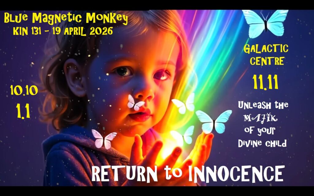 In synchronicity with these Timeline Earth shifting Events and begin a brand New Wavespell of the Blue Monkey and enter the Galactic Center of the Mayan Tzolkin Calendar, Hunab Ku/ Zero Point, with Kin 131 Blue Magnetic Monkey of the Re-Genesis and Magic, Joy and Abundance as we step through the Gateway of Time and into the Eternal Bliss Consciousness of Homo-Luminous, Infinite Light Beings of Terra Nova Gaia Galactica…A’Ho!