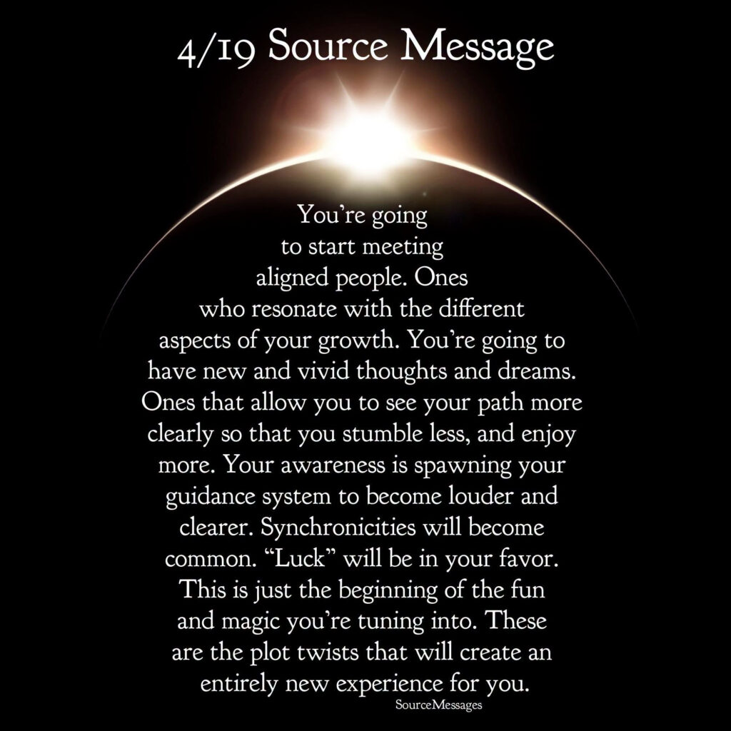 4/19/26: 2025 was graduation. In 2026 you are meant to explore new freedoms, try new roles, roads, recipes, and even realities, and make good choices for yourself. You’re meant to be confident but not cocky, bold but not rash, curious but not gullible, and expressive but not exclusive. You come into New Earth wise enough, experienced enough, and absolutely worthy. But remember to bring with you some joy, peace, and excitement. Today strengthens you to keep moving deeper into the unknown without guarantees or familiar patterns. This is the adventure of a lifetime. And one you’ll be talking about in those to come.